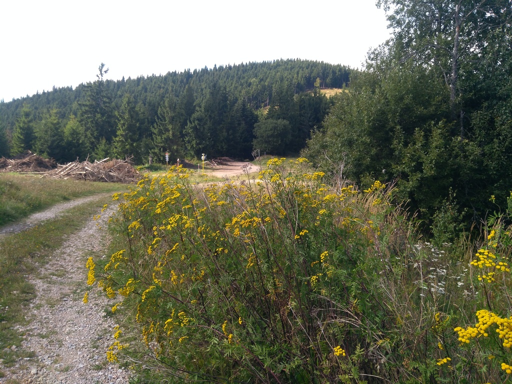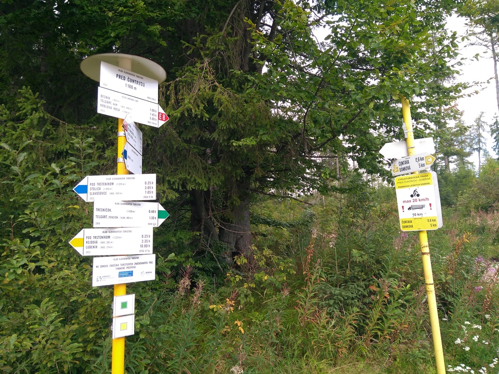 Snímka 1 – Križovatka turistických chodníkov Pred Čuntavou. Odbočujeme z Cesty hrdinov SNP.