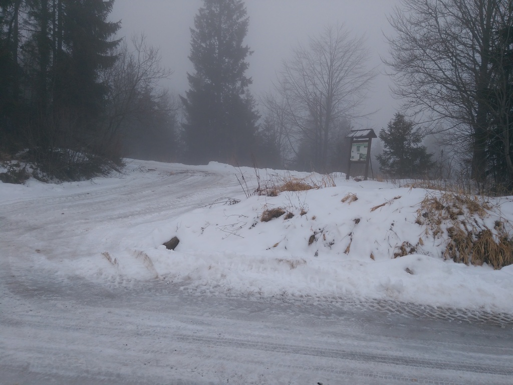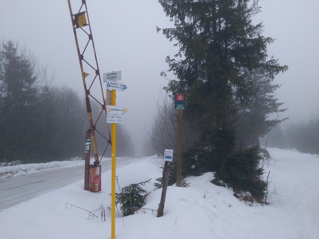 Snímka 1 – Rázcestie pri Tablici na hrebeni Spišskej Magury, kde sa dá prísť autom z Osturne alebo od Ždiaru.