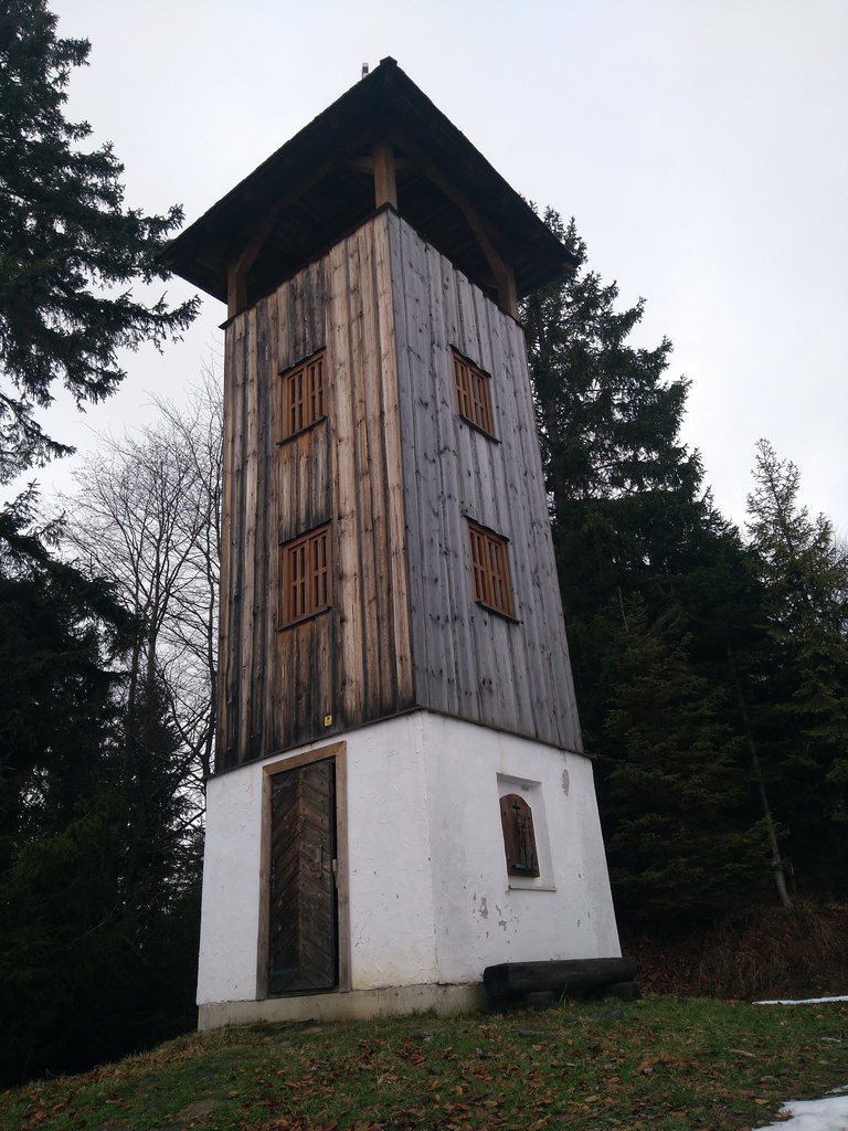 Snímka 11 – Rozhľadňa Brabírka. Na murovanom prízemí vpravo vidíte naznačené okienko. Keď prídete bližšie...