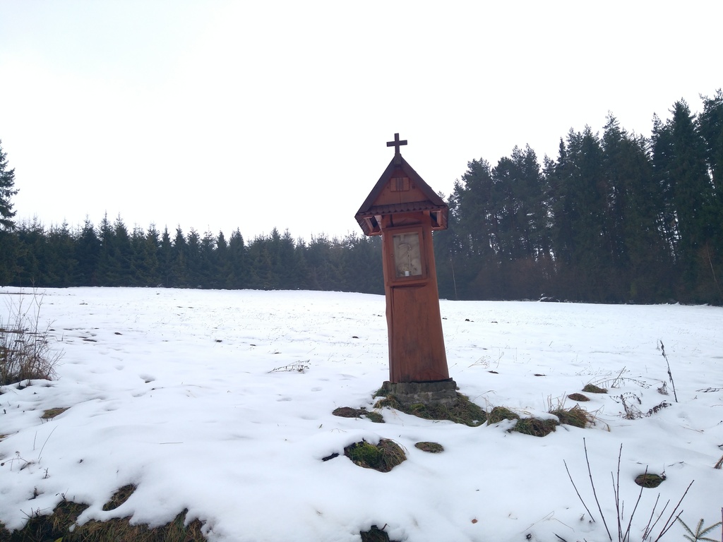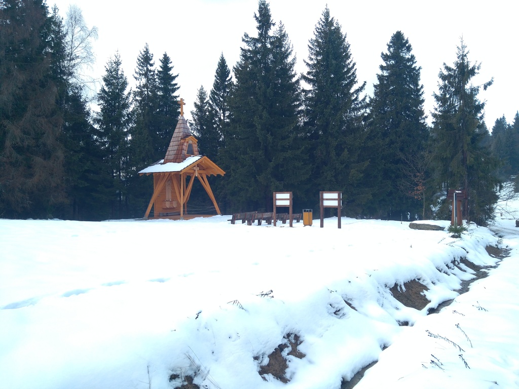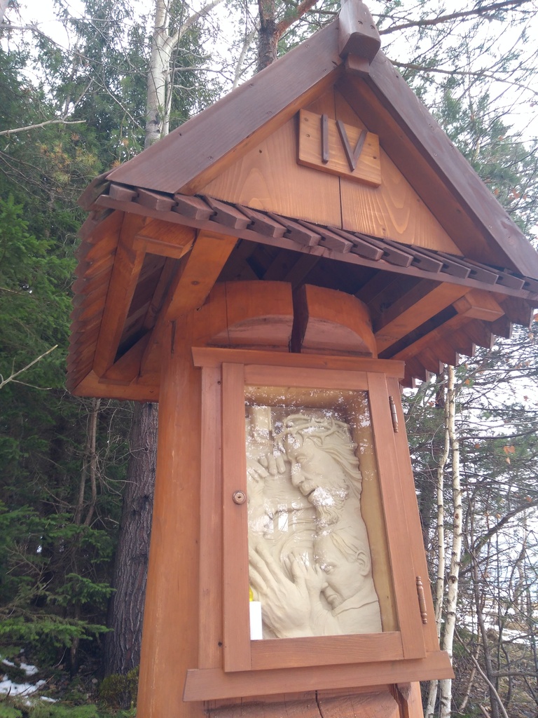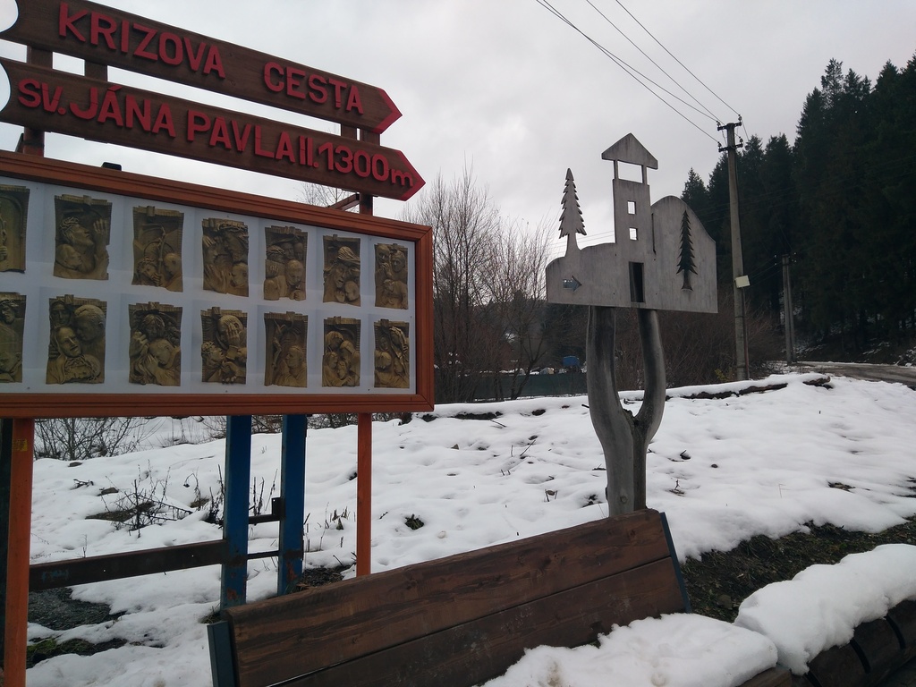 Snímky 2-3 – Keď z okraja dediny vchádzate na turistický chodník, ste zároveň na začiatku Náučného chodníka viery, tradície a poznania. A tiež na začiatku Krížovej cesty sv. Jána Pavla II. Hneď vidíte, ako vyzerajú reliéfy na jednotlivých zastaveniach.
