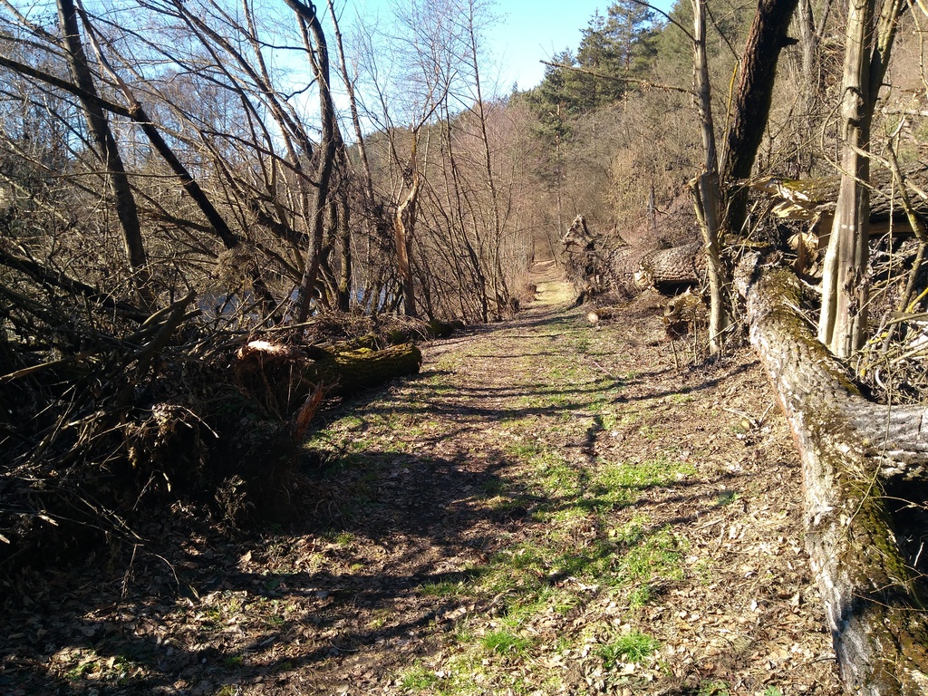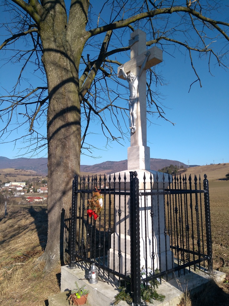 Snímka 5 – Ak sa vyberiete skratkou ja vy, môžete odbočiť k novému krížu nad Kluknavou. Do toho starého udrel blesk napriek tomu, že z oboch strán stoja vyššie stromy.