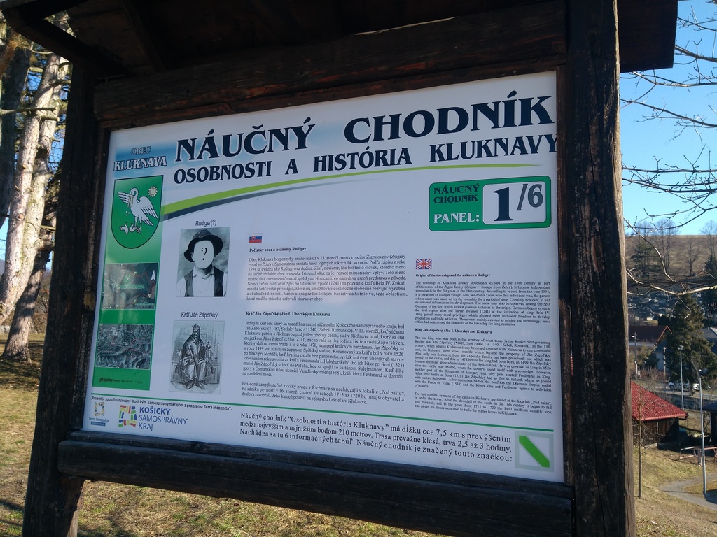 Na mape stredného Slovenska ju nehľadajte, obec leží na Spiši, v Gelnickom okrese. Ak sa tam vyberiete, ako turistov vás bude asi zaujímať najmä výstup k rozhľadni Green Point. Ale môžete sa vybrať aj na náučný chodník, vhodný aj pre rodiny s deťmi. Začína sa v centre Kluknavy, potom vedie hore dedinou; avšak s domácim turistom Petrom Šmídom plánujeme trasu k druhej informačnej tabuli prejsť skratkou po poľných cestách. Zatiaľ sme len pri prvom paneli a pozeráme sa na fotografiu muža, ktorý má namiesto tváre otáznik. Má to byť zakladateľ Kluknavy.