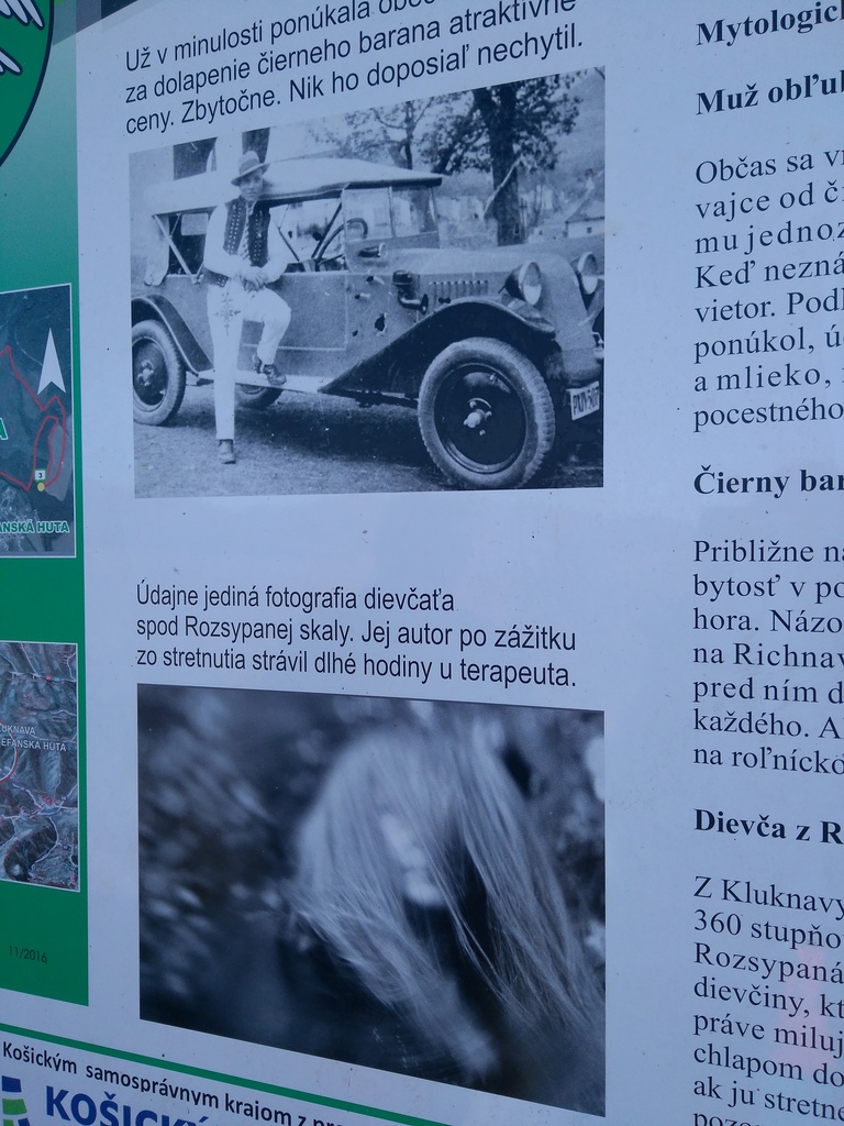 Snímka 6 – Na druhej informačnej tabuli nájdete aj údajnú fotografiu dievčaťa, ktoré vraj blúdi po Rozsypanej skale. Ale žiadny strach, trasa náučného chodníky cez Rozsypanú skalu nevedie.