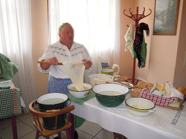 No zároveň sú aj modernou súčasnosťou. Napríklad Zázrivá je preslávená syrovými výrobkami. Nájdeme ich v obchodoch, ale keď prechádzame cez dedinu, tak na každom kroku zbadáme z auta aj drobného predajcu. Ako taký syrový korbáčik vzniká? Sylvia Hoffmannová spolu s ďalšími zvedavcami sledovali pri výrobe Viktóriu Žuborovú. Kým sa pustila do práce, pripravila si na stôl vedro s čistou vodou, drevené varešky a niekoľko nádob. Hneď vedľa mala poruke dva druhy syra.