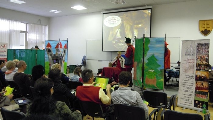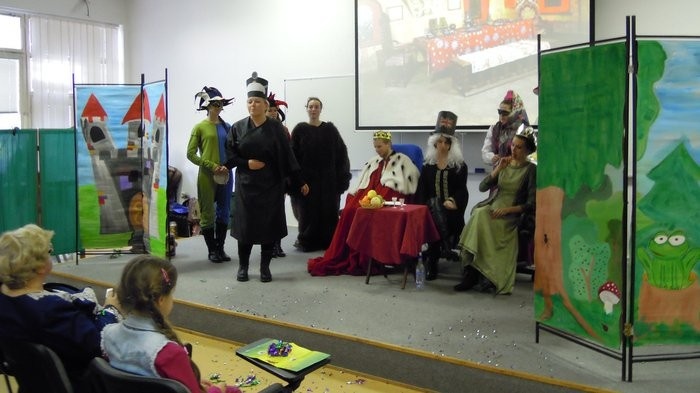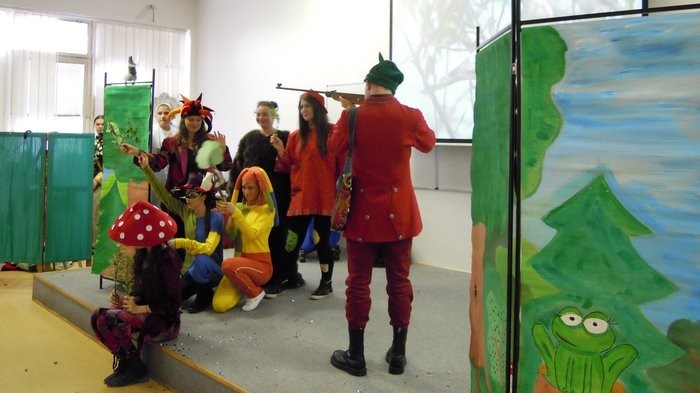 Minimálne tí pätnísti, ktorí sa na záver semestra predstavili spolužiakom i verejnosti s divadelnou rozprávkou o strelcovi Fedotovi. Zvládli totiž veľa textu. Okrem toho, tak ako si to divadlo vyžaduje, museli vymyslieť a zhotoviť masky a rekvizity – vrátane jeleňa so zlatými parohami! Súčasťou predstavenia bola aj video prezentácia v pozadí a hudba; skĺbiť všetko dohromady, to si vyžadovalo dlhý nácvik a poriadnu dávku tvorivosti. A tak nečudo, že na konci predstavenia znel potlesk, ako sa presvedčila Sylvia Hoffmannová.