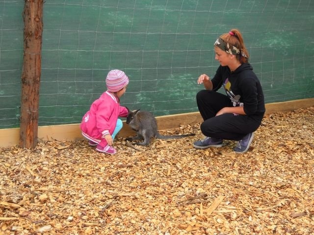 Predstavte si obrázok: malý klokan a v pozadí kopce Západných Tatier. Poviete si, že je fotomontáž. - Kdeže, takúto kombináciu už uvidíme aj na vlastné oči. Pri Liptovskej Mare vznikla malá Zoologická záhrada, kde sú bežné, ale aj - v našich končinách nezvyčajné - zvieratá. Zaujímavosťou je, že možno k nim vojsť do výbehu a potešiť sa s nimi, čo ocenia určite deti. Kontaktná ZOO spolupracuje s klasickými zoologickými záhradami, ale tiež s inými zariadeniami, kde sa starajú o zvieratá. Domáci Peter Vrábeľ ukázal Sylvii Hoffmannovej, že v ohradách pre zvieratá sa niet čoho báť.